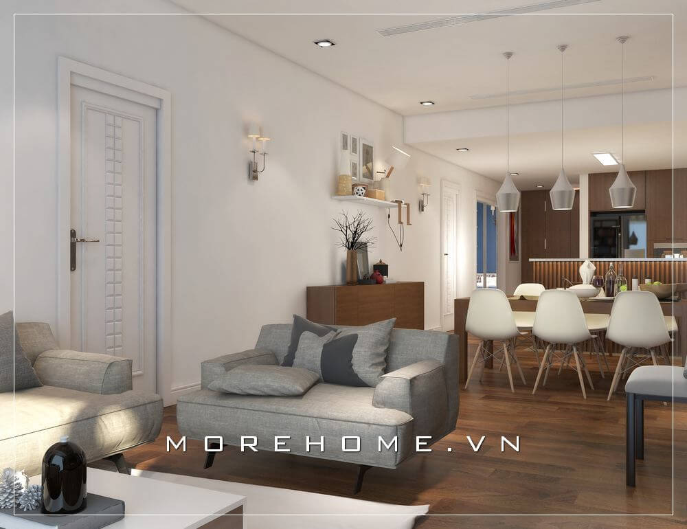 Lựa chọn bộ sofa chữ i hiện đại nhỏ gọn tiện nghi với vỏ bọc vải màu kem tinh tế mang đến sự tươi mới, trẻ trung thoáng đãng cho phòng khách căn hộ chung cư.