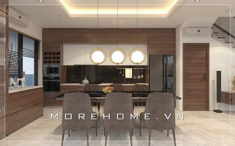 Thiết kế nội thất phòng ăn liền bếp hiện đại cho nhà chung cư nhà phố, biệt thự