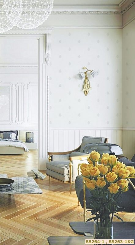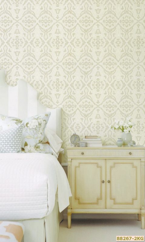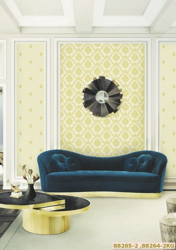 Giấy dán tường mã 88267-2 là kiểu mẫu mang đậm phong cách châu Âu với họa tiết hoa văn màu vàng nhạt rất thích hợp trang trí cho không gian sang trọng
