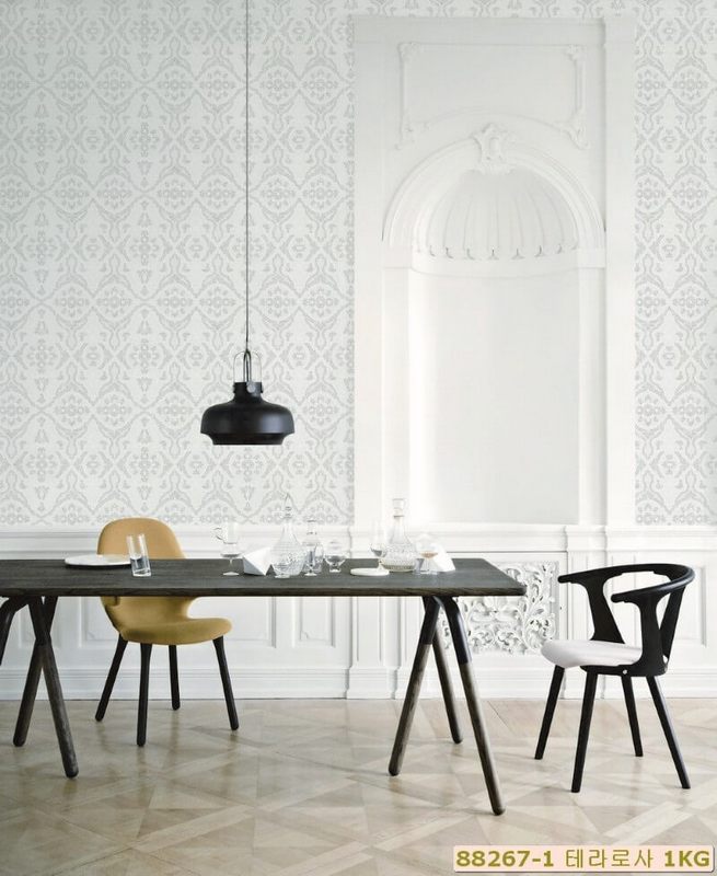 Lựa chọn giấy dán tường họa tiết với gam màu trắng tinh khiết mang lại sự thoải mái nhẹ nhàng cho tất cả mọi người trong gia đình