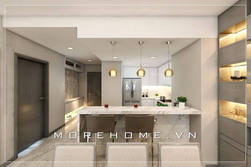 Thiết kế nội thất phòng bếp cho căn hộ hiện đại, sang trọng và thuận tiện.
